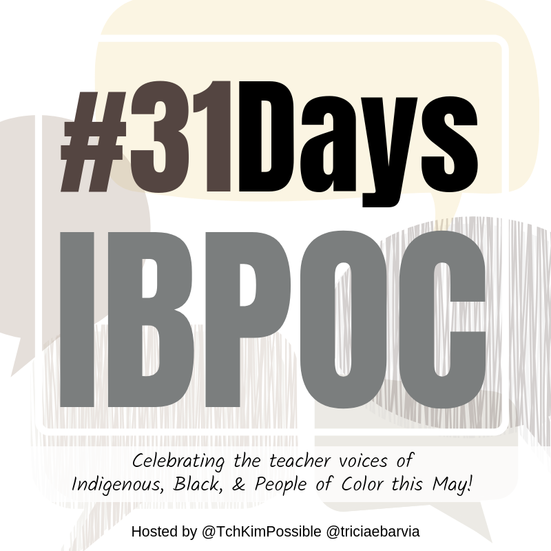 This blog post is part of the #31DaysIBPOC Blog Series, a month-long movement to feature the voices of Indigenous, Black and other People of color who live as teachers, artists, writers and scholars. Please read yesterday’s blog post, Pinoy Ako by Leah Werther (and be sure to check out the link at the end of each post to catch up on the rest of the blog series).